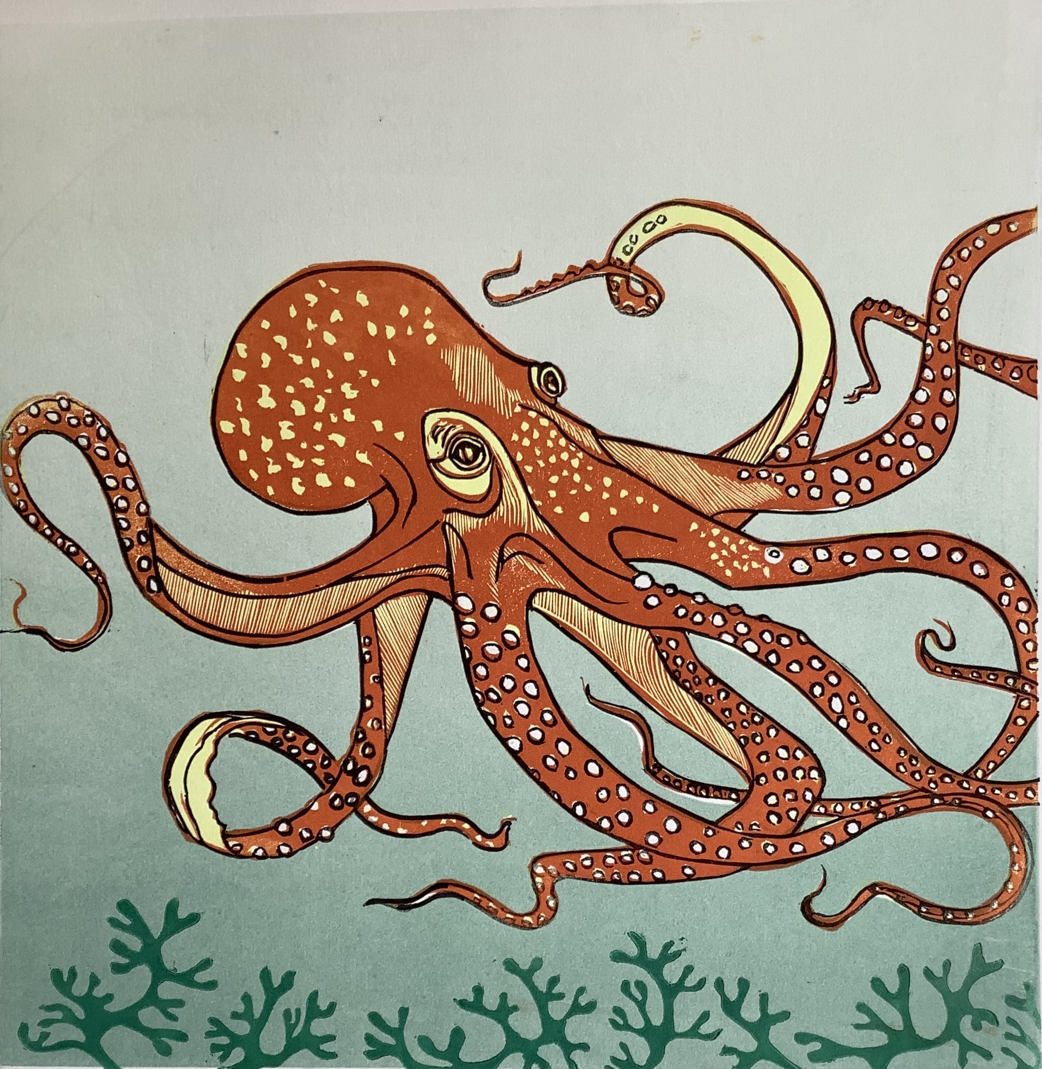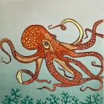 Printmaker Bridget Syms works from a studio on the far west coast of Cornwall. Her images celebrate animal life of all kinds, from the crow and the curlew to the octopus and the whale.